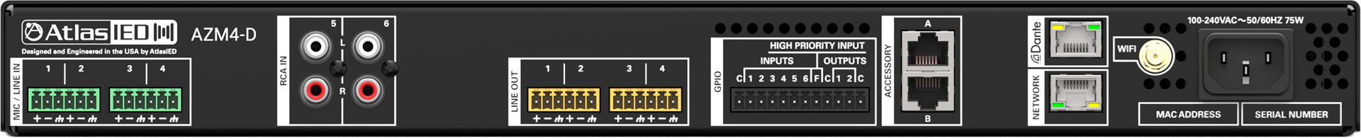 The Atmosphere AZM4-D is a 4-zone audio processor and the heart of an Atmosphere audio control system. Powerful DSP combined with innovative algorithms offer custom solutions for a wide variety of spaces. Dante networked audio provides convenient audio distribution to other Dante-enabled devices. A built-in message player, virtual wall controllers, learning ambient noise sensing, Tilter Filter™, auto-gain, GPIO, bell scheduler, room combine, and many more features, make the AZMP a processing powerhouse.​