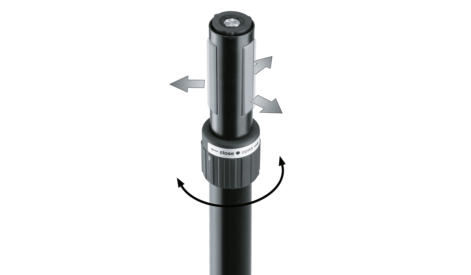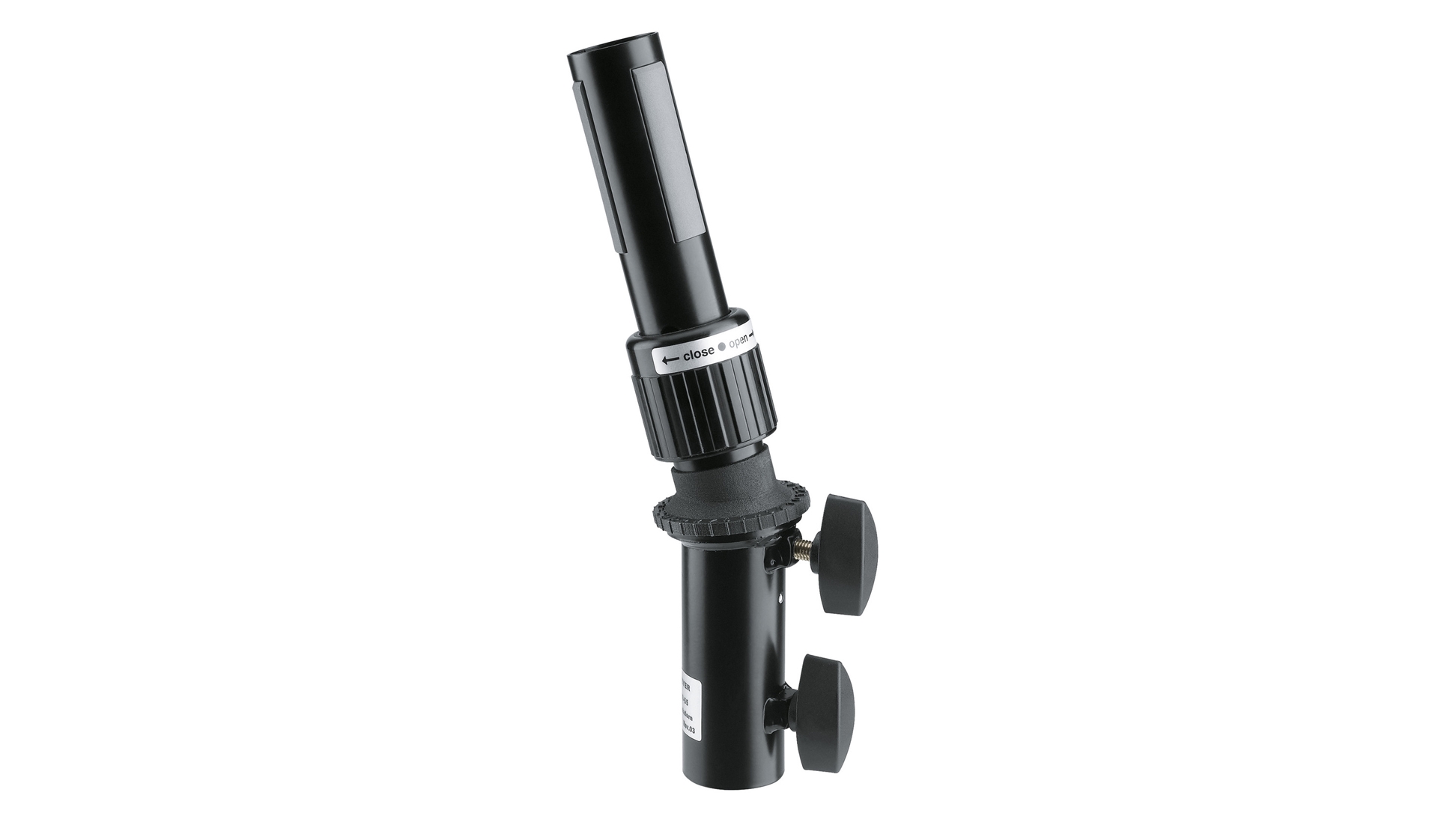Aufsteckbar auf Boxenstative mit Rohr-Ø 35 mm. Mit einzigartigem, patentiertem Spreizdorn für festen, spielfreien und fixierbaren Sitz der Box. Die Spreizbacken aus Kunststoff sorgen für eine resonanzarme Verbindung zwischen Box und Stativ. Einfache Handhabung mittels Spannring.